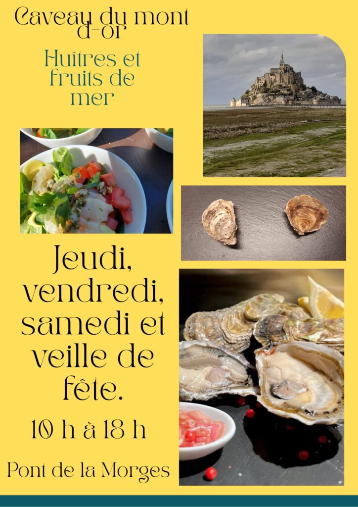- Huîtres : Marennes Oléron, Fines de Claire, St Vaast